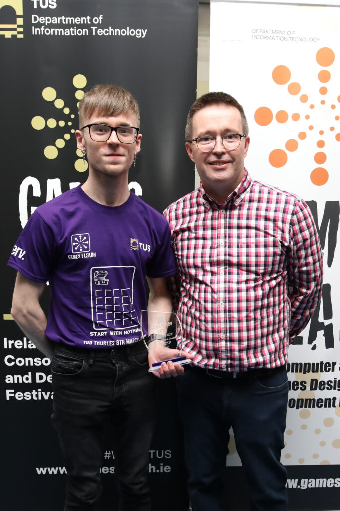 Dr Liam Noonan Programme Leader for BSc in Software Development with Games Programming TUS, said, “Once again, we saw a very high level of talent on display at this year’s Games Fleadh, and the high standard of the talent was especially eveident in the small margin between the different results I would like to thank our sponsors, EA Games, FiServ and all other supporters who contribute massively to the success of Games Fleadh each year, and this year was no exception.”