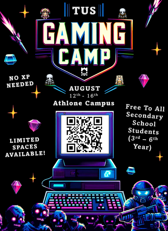 Join us at TUS Gaming Camp for an unforgettable adventure into the heart of game development. Let your creativity run wild, your code come to life, and your games capture the imagination of players. The game starts now—are you ready to play?